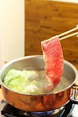 しゃぶしゃぶ鍋には熱伝導性に優れた銅鍋を使用。肉の旨味を逃がさず肉本来の甘みをお楽しみいただけます。